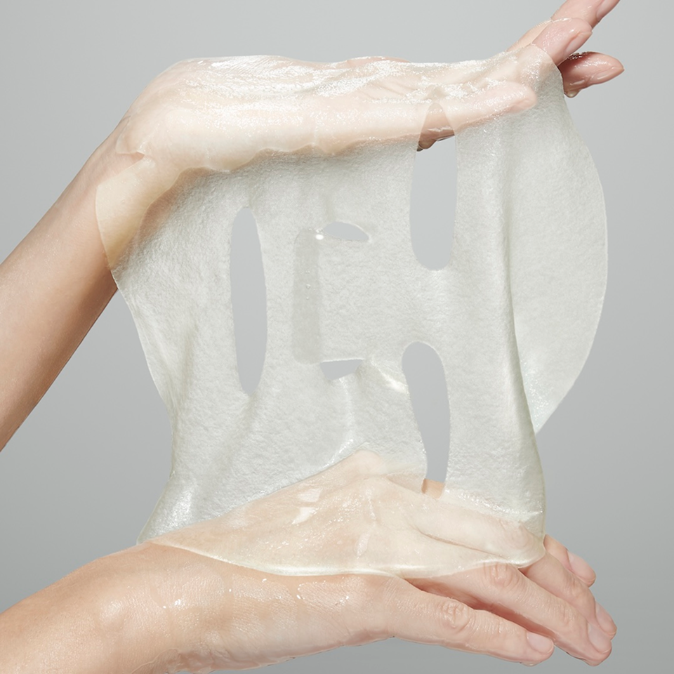 処方液に触れることでぷるぷるとした独特の質感に変化する、セミゲル素材のシートマスクを初採用。まるで肌に吸いつくようにぴたっと密着する新感覚のつけ心地。
