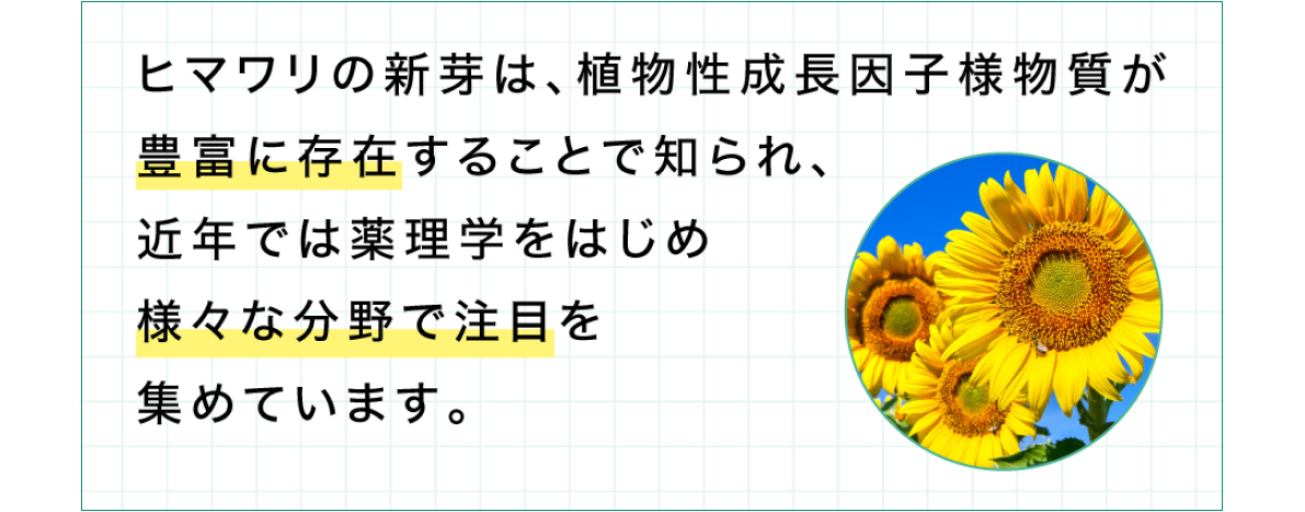 医療分野での応用が注目されているNAD+(長寿因子)に着目した、ヒマワリの新芽由来の「RejuveNAD™*1」を高配合。